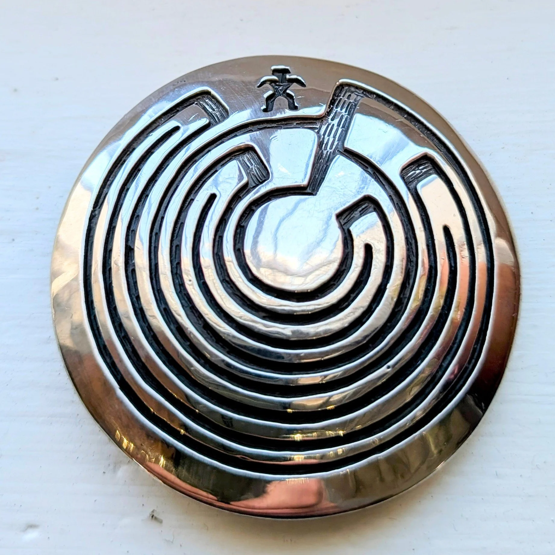 This trim, contemporary bolo tie is the work of Jack Tom. His father, a coal miner and a bricklayer, was also a medicine man (hataałi) who performed the Shooting Way ceremony, a healing ritual used to cure a range of illnesses associated with lightning, from paralysis to nervousness. Jack was struck by lightning in 1979 while working for the railroad in Park City, Iowa. His employer laid him off and so, jobless and injured, her returned home to his father who performed the Shooting Way to restore his son to hozhón (harmony/health)
