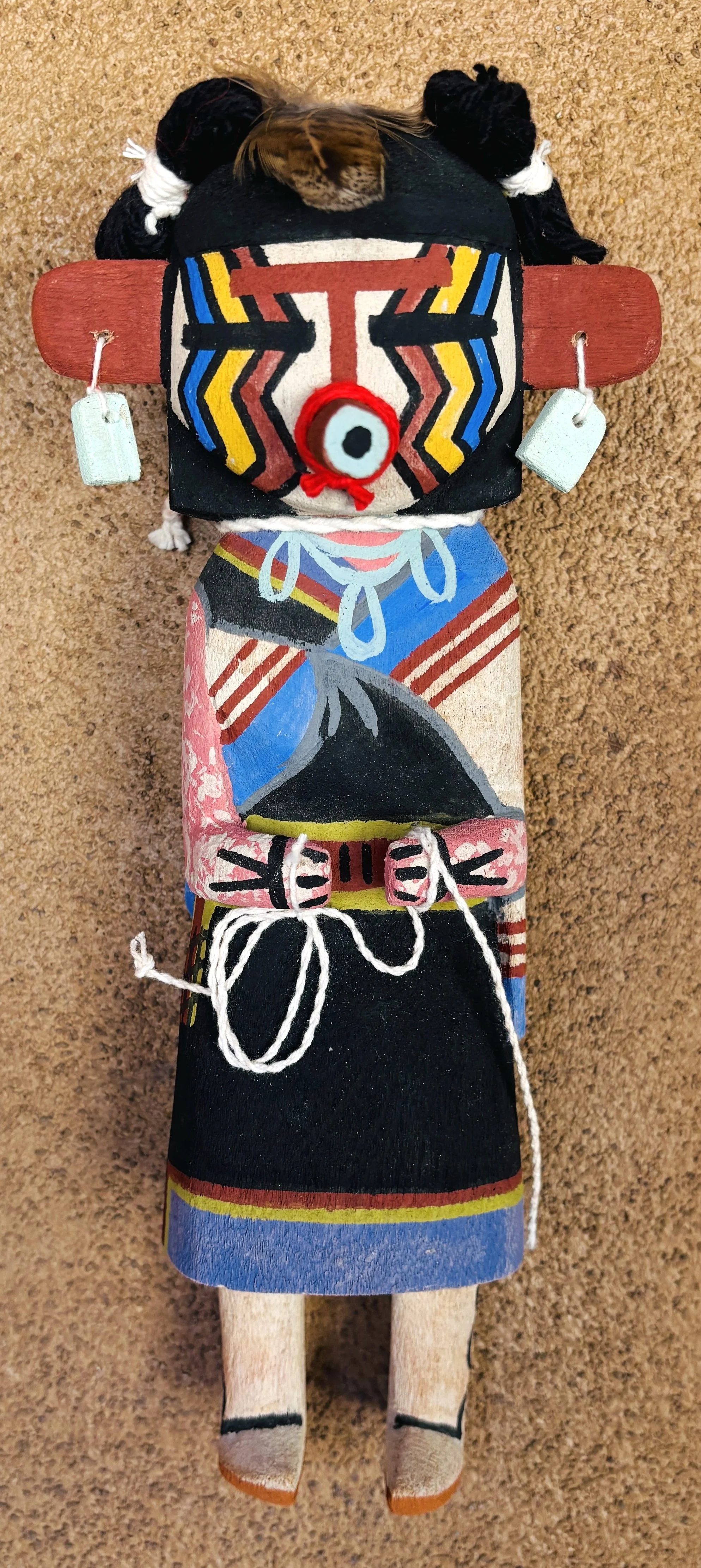 A Katsinmana by Nick Brokeshoulder, 12 inches high and $260. Also by Nick: a Heheya Mana, She is 9.75 inches high and $260. A Nata’aska by the late Bertram Tsavadewa, Hopi-Hualapai from Old Orayvi, 11.5 inches tall and $350. ( ALL IN SANTA FE)