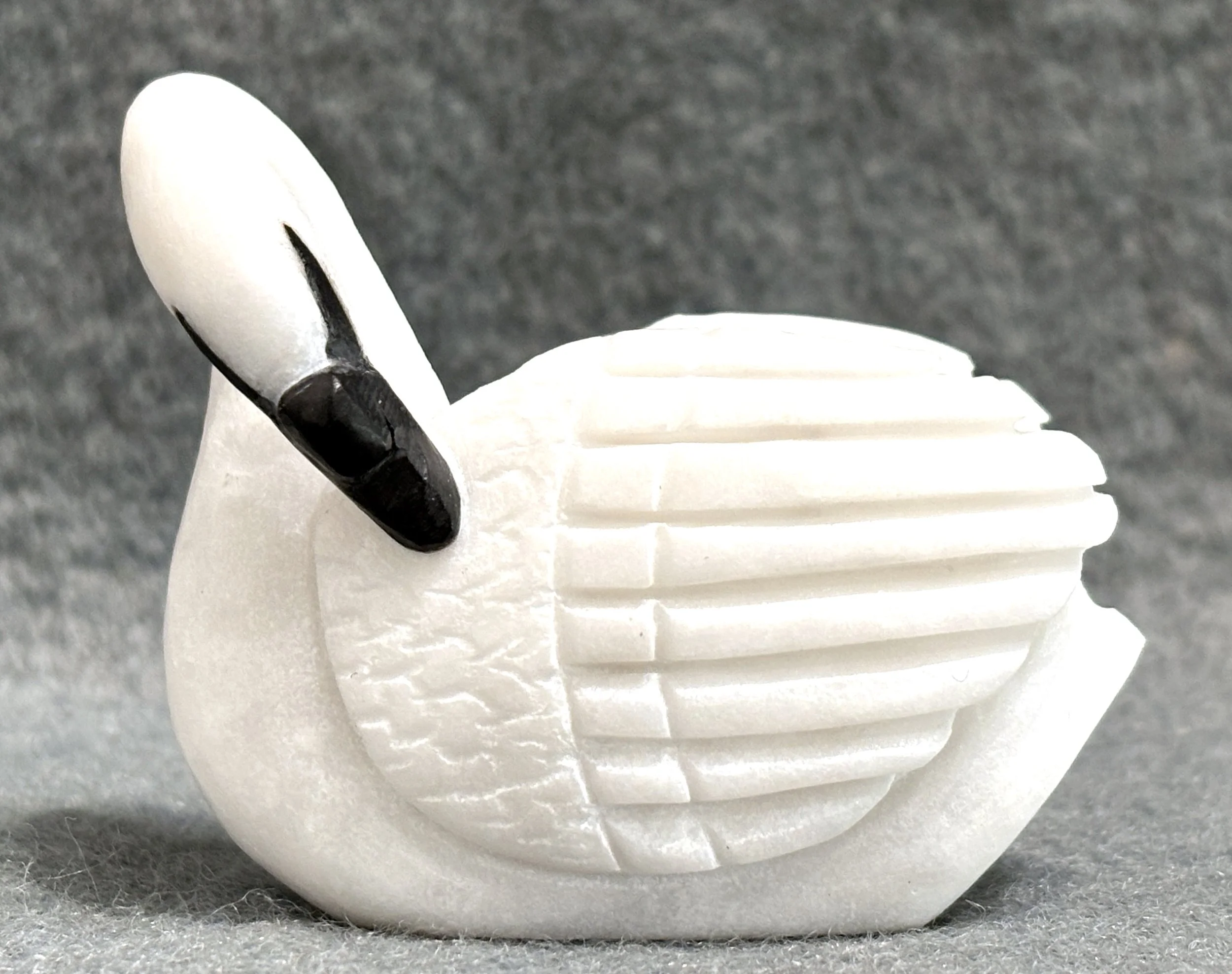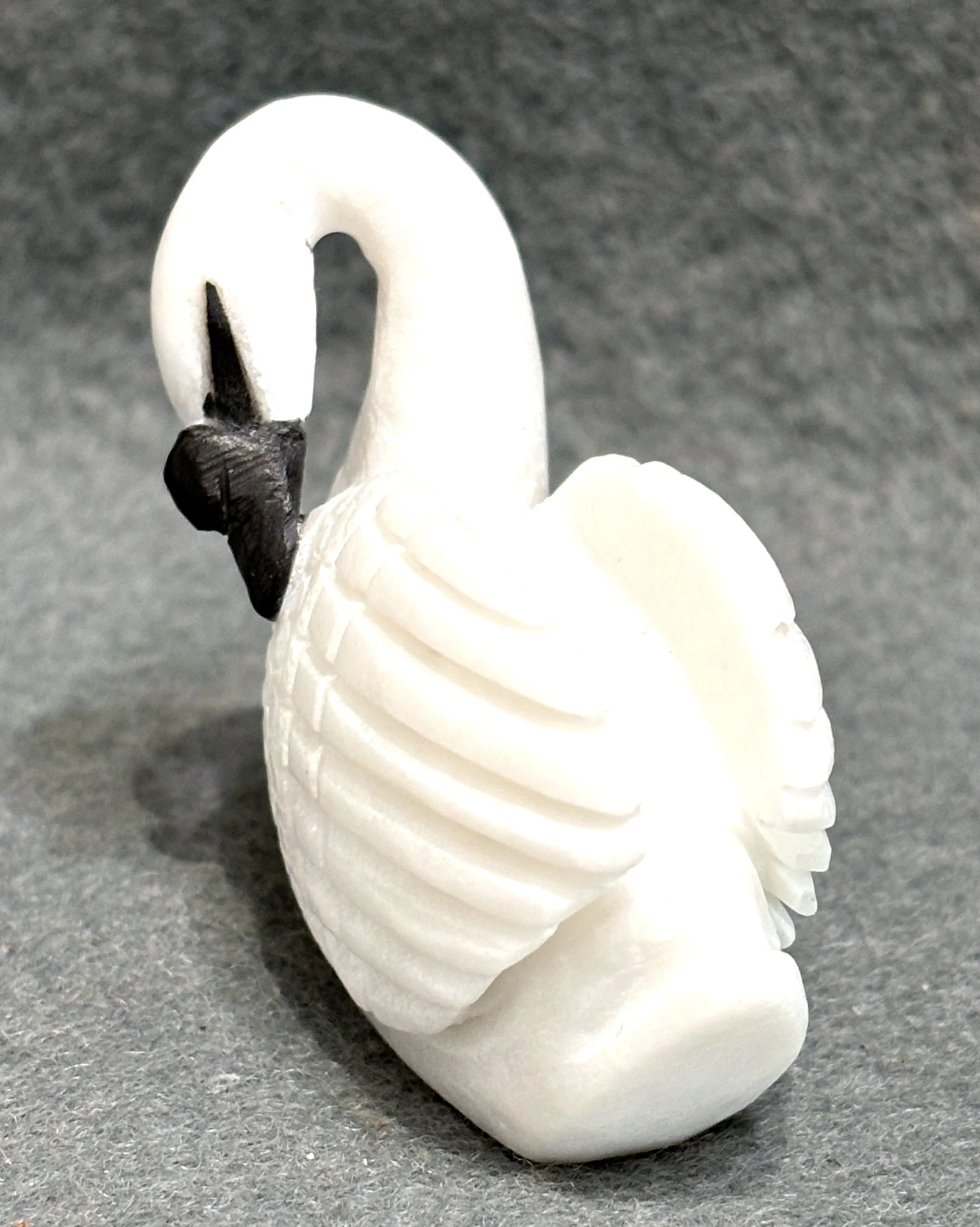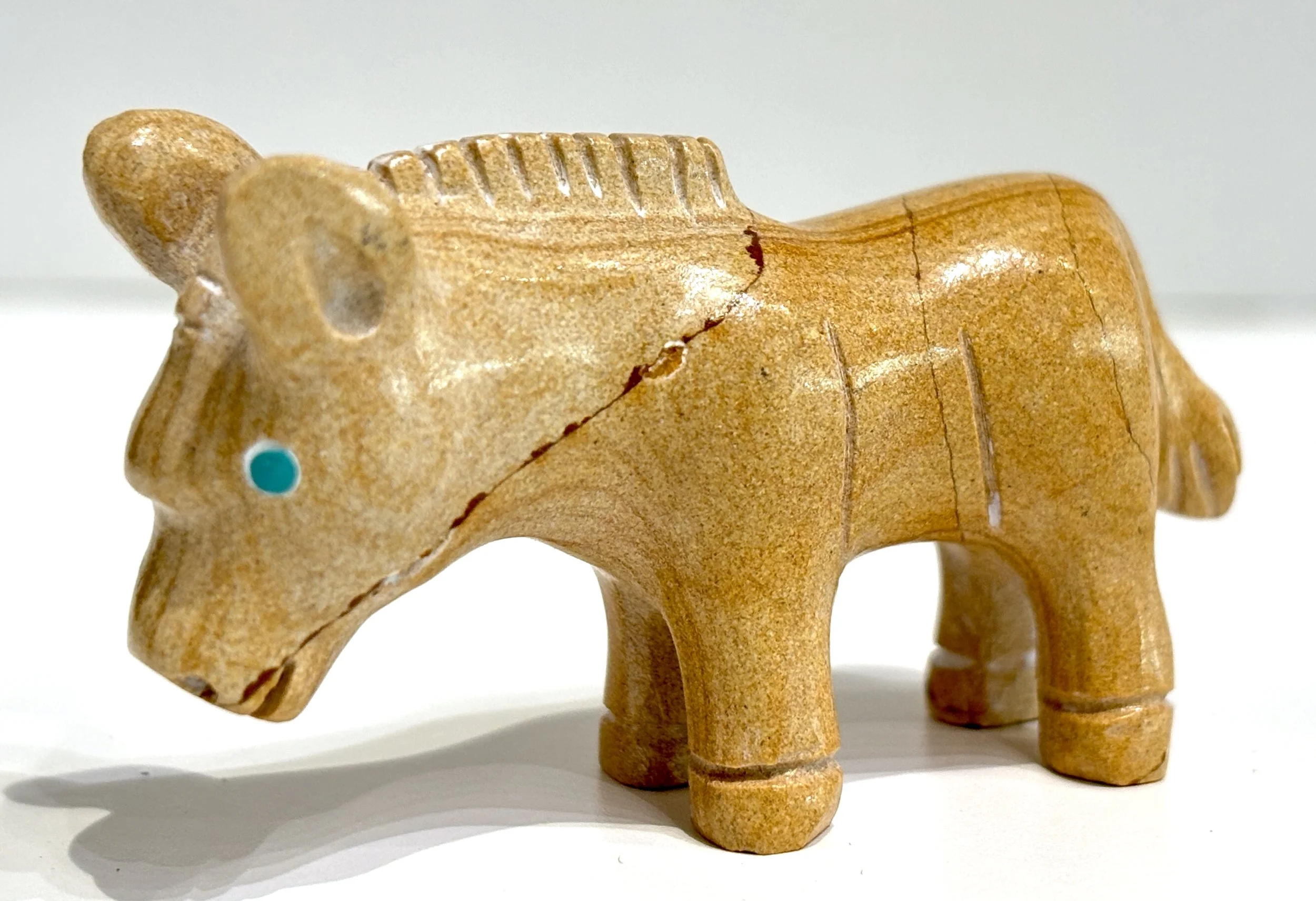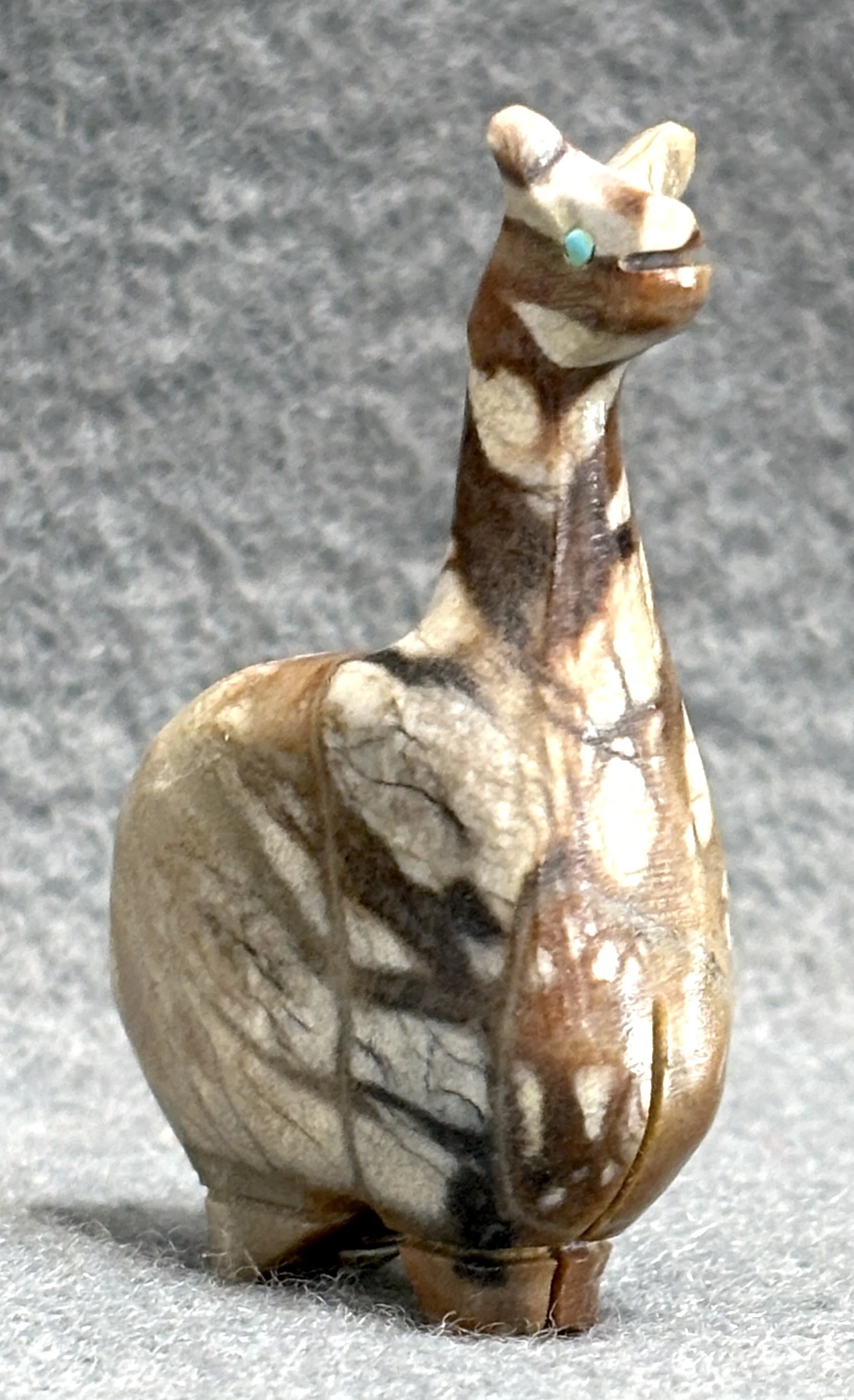 At left is a beautifully carved fossilized ivory musk ox by Inupiaq artist Norbert Thomas. This one is 2.25 inches long and $400. At right is a Picasso marble giraffe by Bernard Laselute, 1.75 inches high and $70.