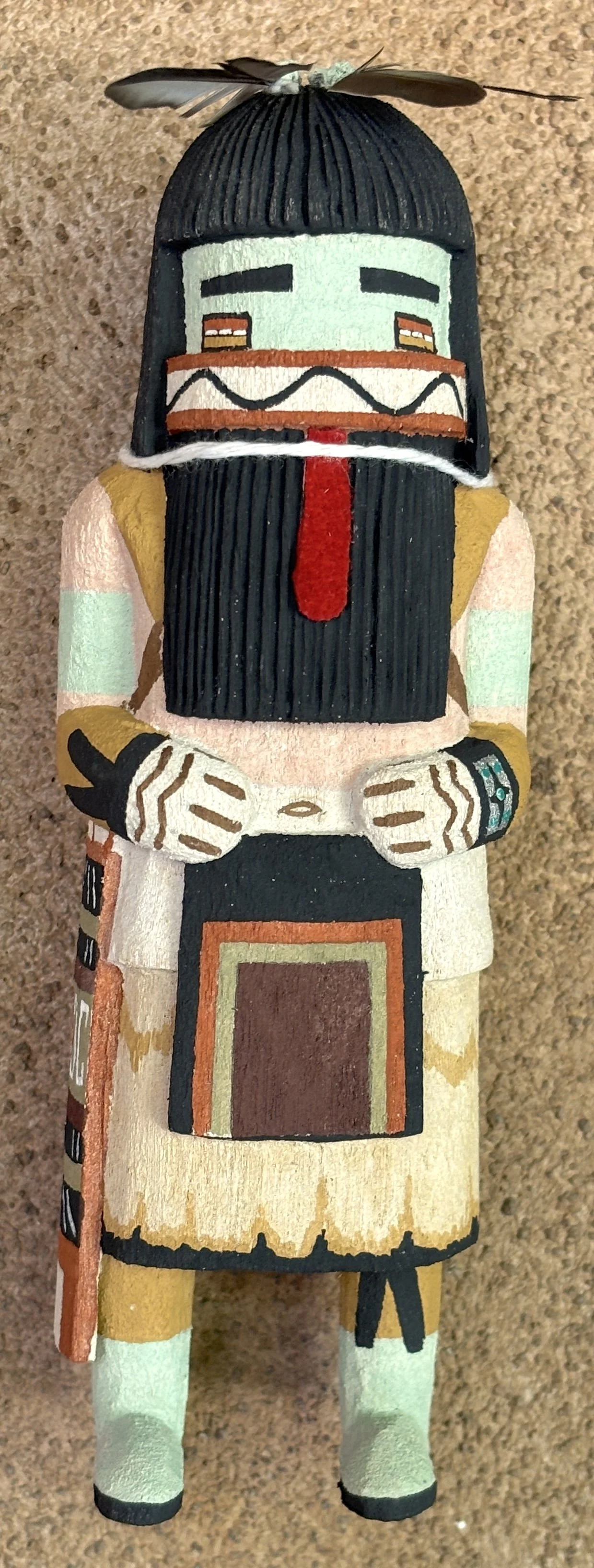 A Paiyatemu by Hongvi Marquez, 6 3/8 inches high and $160. A Tsili or Chile katsina by Kevin Honyouti. It is 7 3/8 inches high and $250. A Tsuku or clown by Sam Masayumptewa, 4.5 inches high and SOLD. The Heoto katsina was carved by Hongvi Marquez. This one is regarded as a warrior or guard katsina, 6.5 inches high and SOLD. (ALL in SANTA FE)