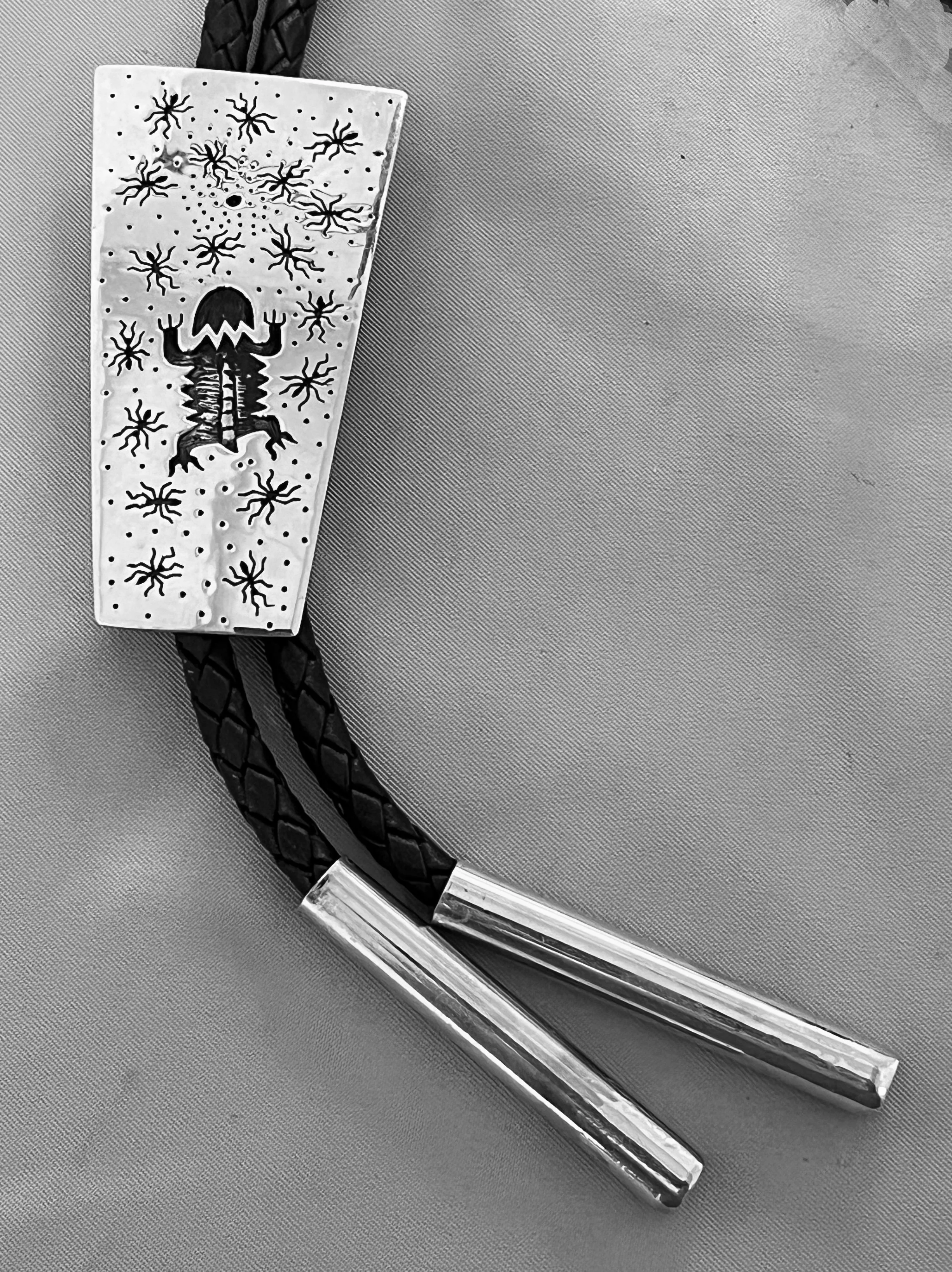 Robert Sorrell has been creating art for 50 years - printer, painter, sculptor and silversmith (and professor of art). Frequently he turns his attention to stereotypes - that he then turns on it’s head. This buckle is a classic example Made for a 1 1/4 inch belt, it measures 1 5/8 by 2 7/8 inches. $1100 (SANTA FE)