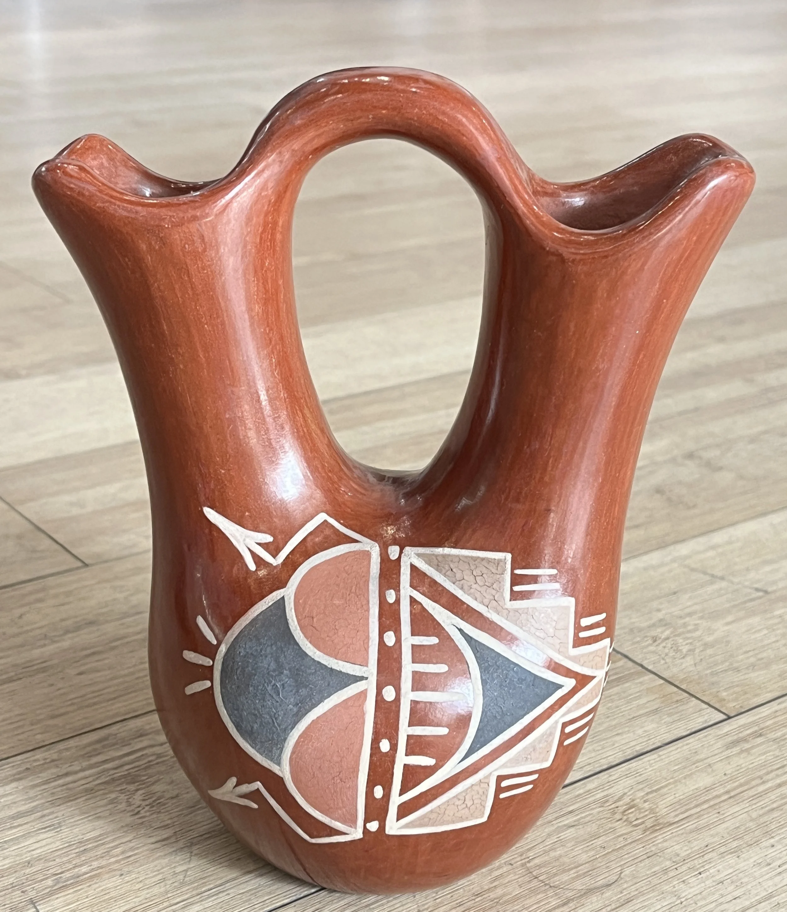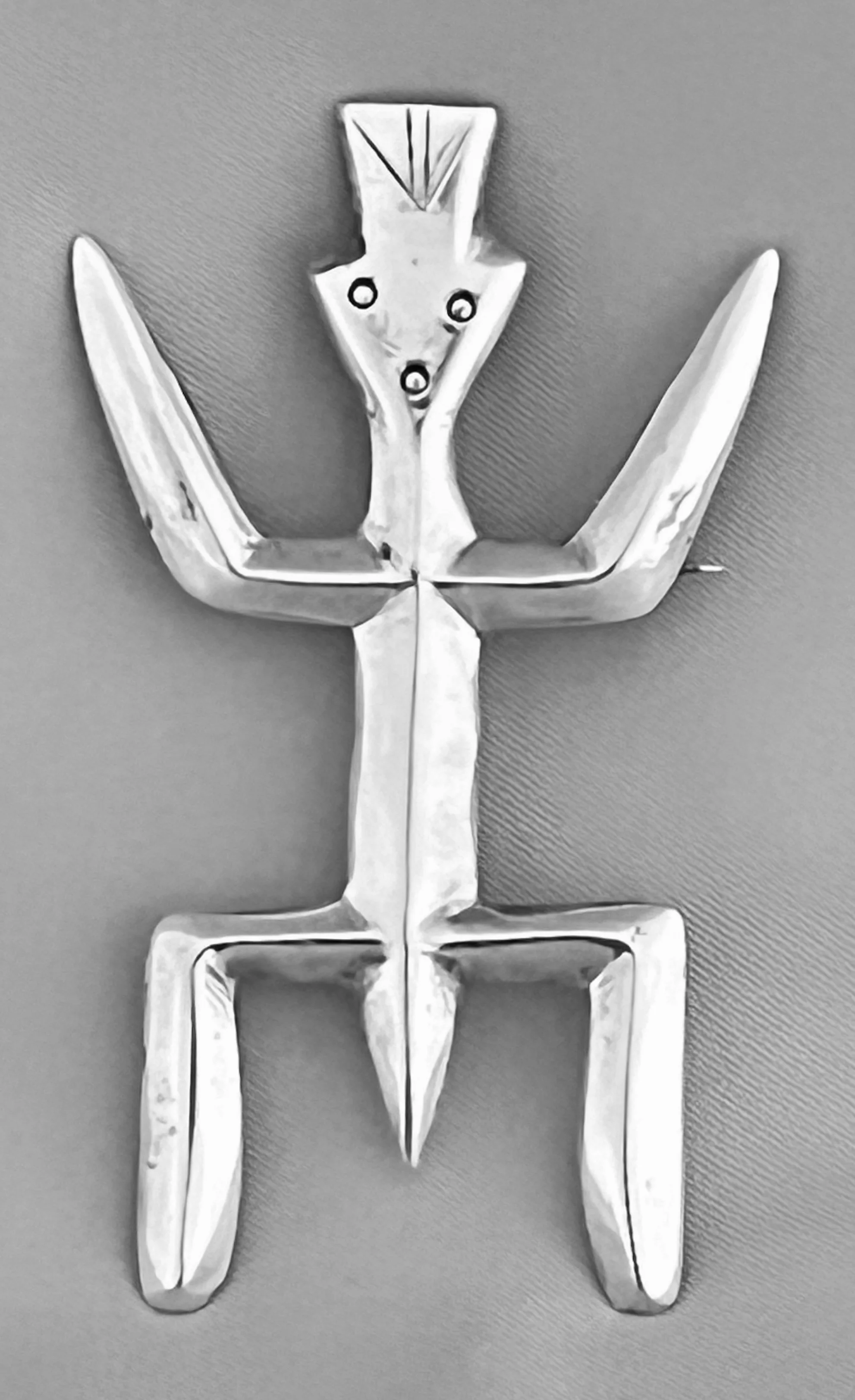 A Pang or Mountain Sheep katsina by Wendell Silas-Yazzie. 11 inches high and $1100. (TUCSON) A beautifully detailed traditional style doll by Ethan Waters, 11.5 inches tall (including base.) He is depicted here as he would appear in one of the summer dances - with gifts for both boys and girls. $800. (SANTA FE) A figurine of a Medicine Man, carved of Zunistone by Freddie Leekya in the style of his grandfather, Leekya Deyuse. 4 inches tall $150 (TUCSON)