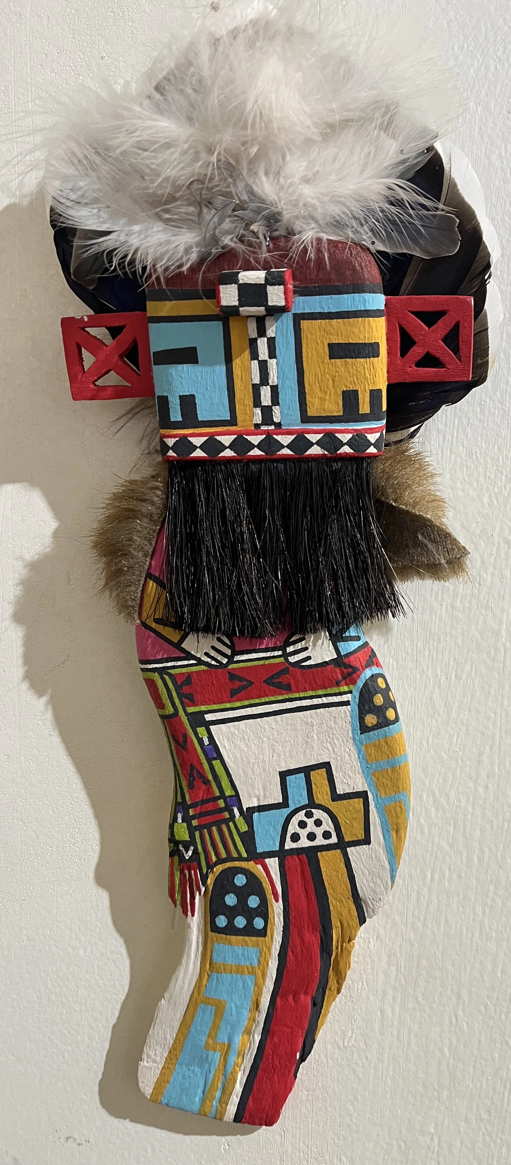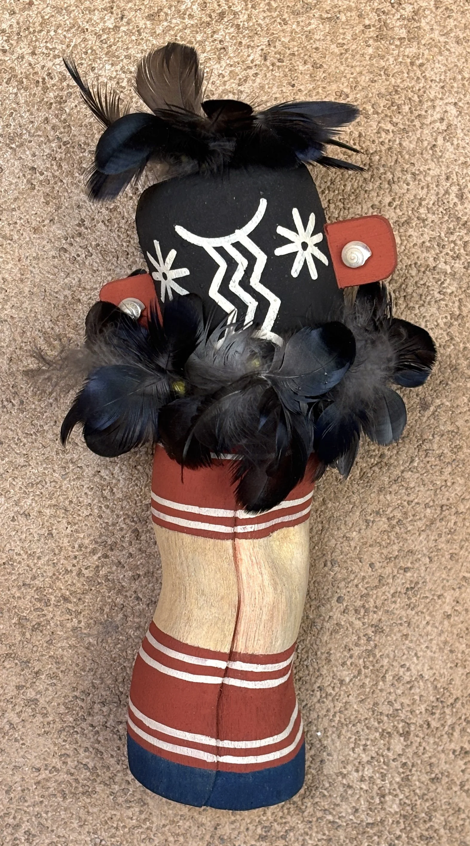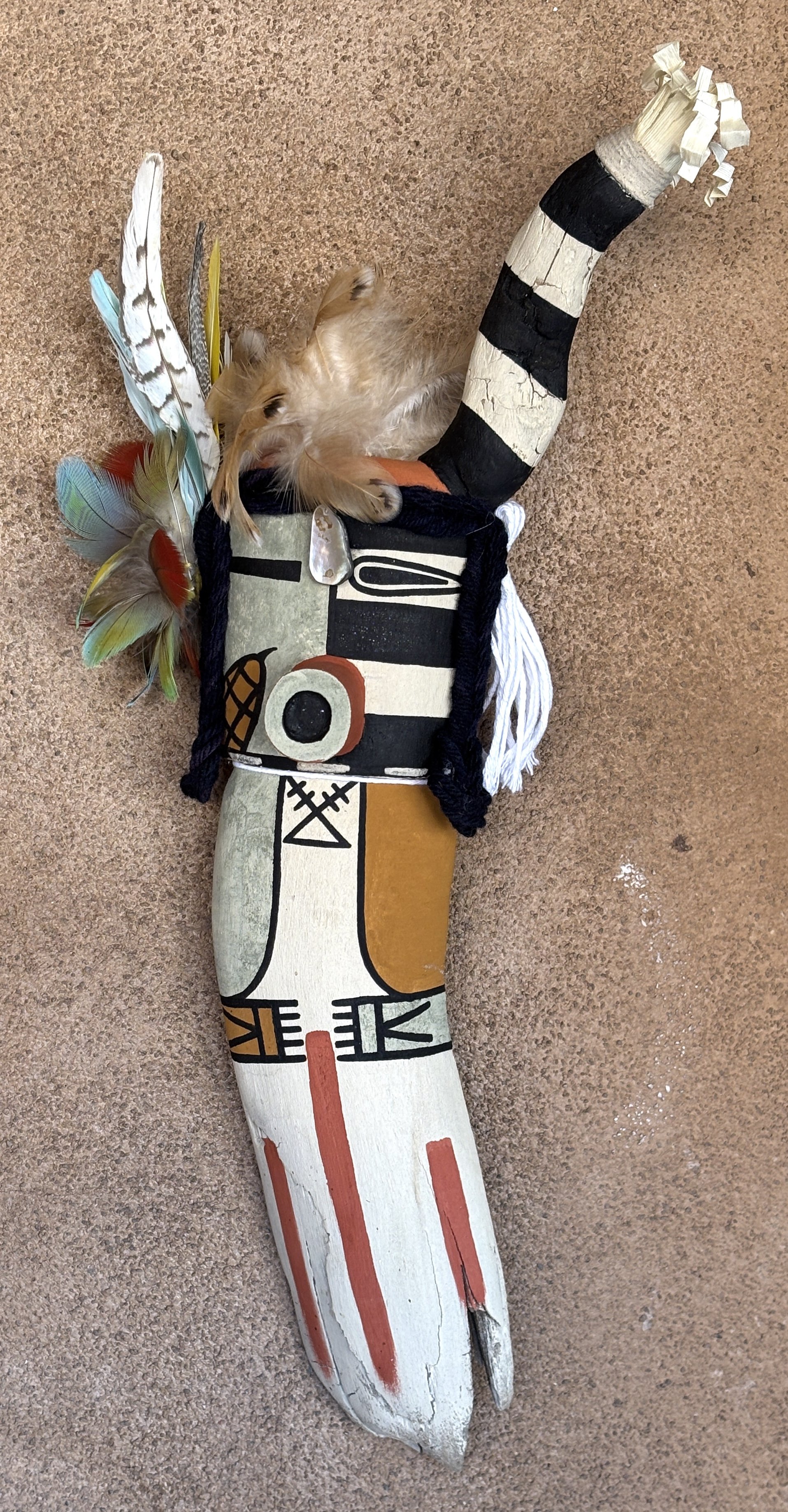 A Hilili or Guard katsina by Brennon Collateta. It is 14 inches high to feather tip and $150. (SANTA FE)