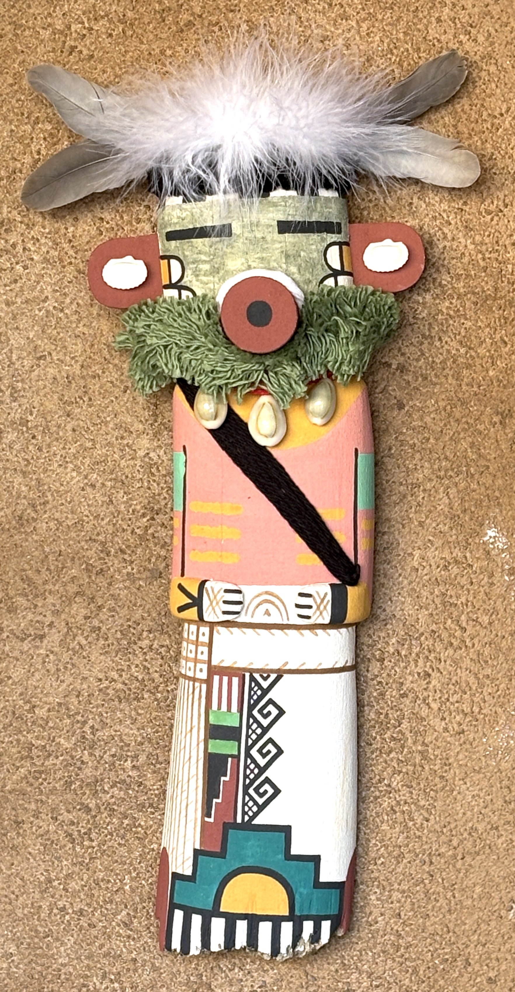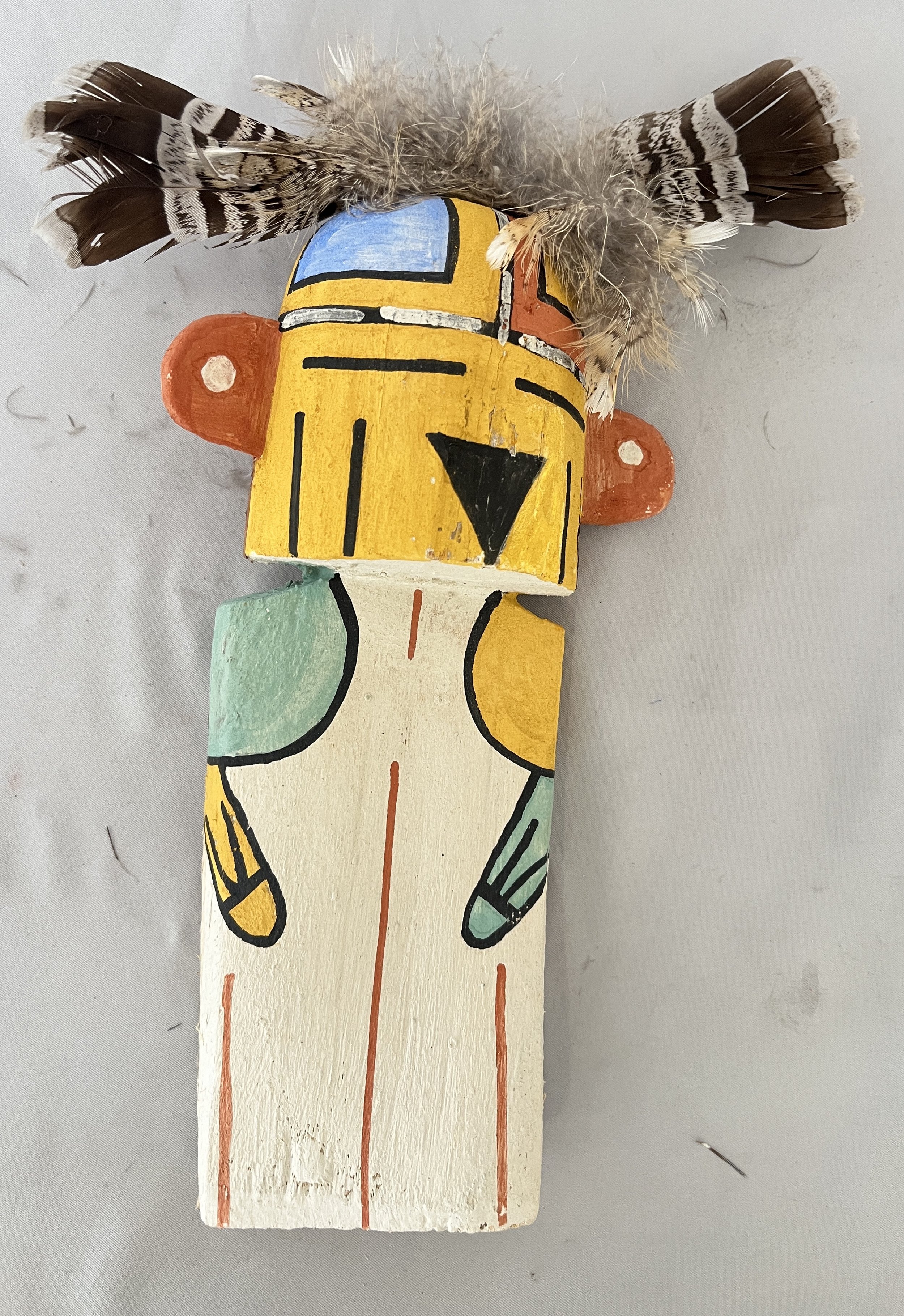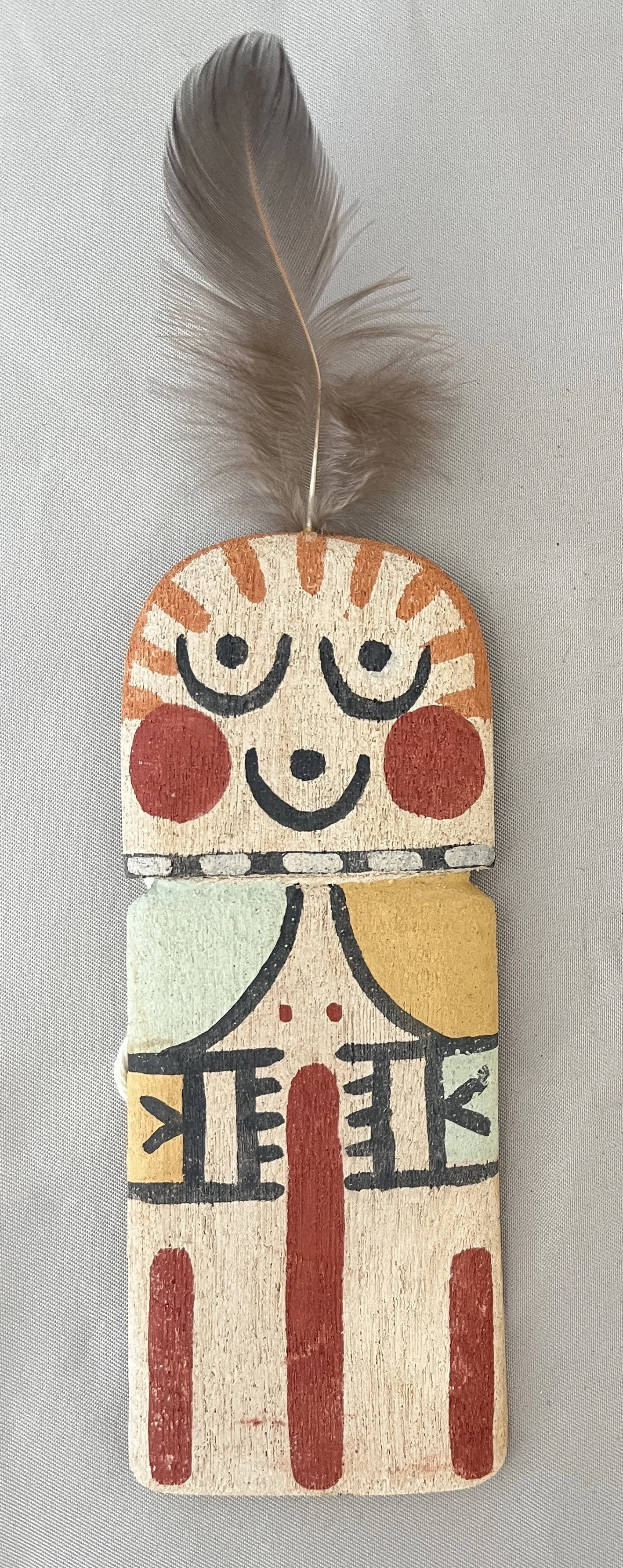 A Hilili or Guard katsina by Brennon Collateta. It is 14 inches high to feather tip and $150. (SANTA FE)