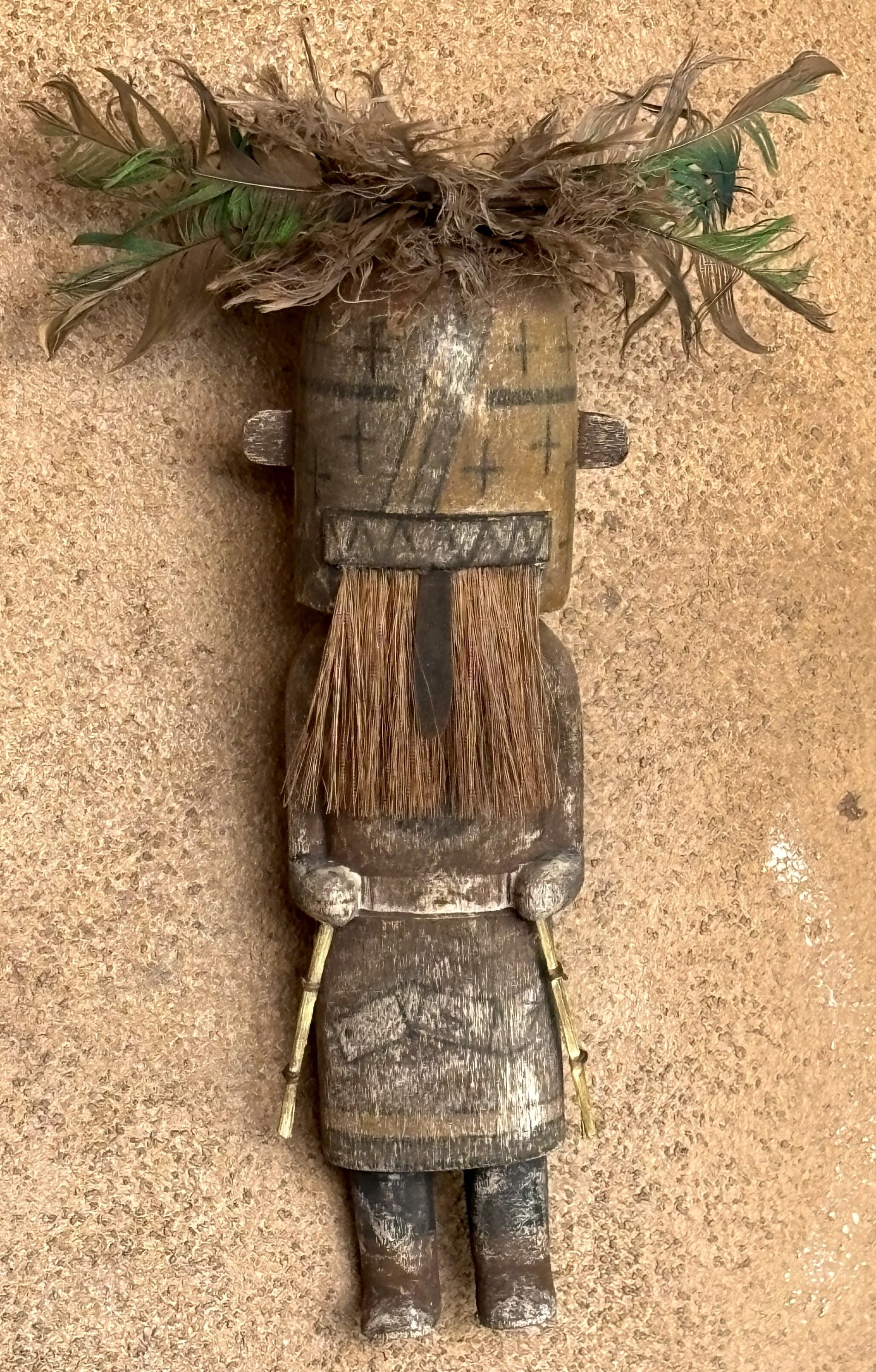 This particular carving represents the Huuhuwa or Cross-Legged katsina which is said by some to represent the spirit of an exceptionally kindly man from one of the Hopi villages who lived in the 1800s.