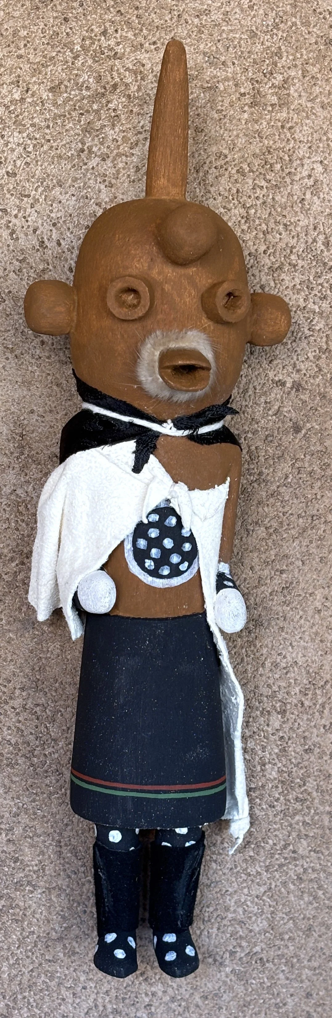 Between our Santa Fe and Tucson stores we have somewhere between 400 and 500 katsinas so on our website we can only hope to show you a cross-section. Please contact us if you are looking for something specific that you do not see. We may have it or be able to acquire it for you