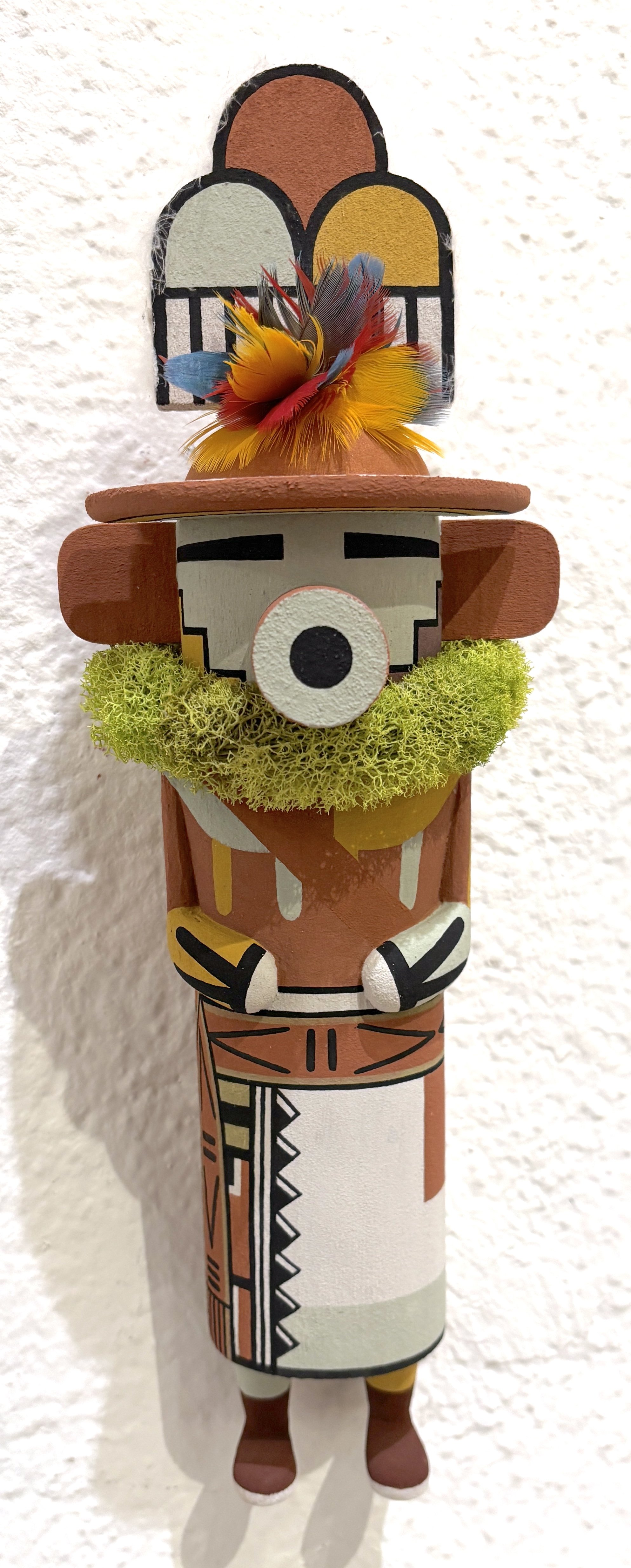 A Pöökhonghoya by Ed Seechoma. 12 inches and $450. Totsa is the hummingbird katsina. This one by Brandon Kayquoptewa is 11 inches and $275. A Sio Navan or Zuni Velvet Shirt katsina by Randy Brokeshoulder. 17 inches to the tip of the feather and $350. (ALL in TUCSON)
