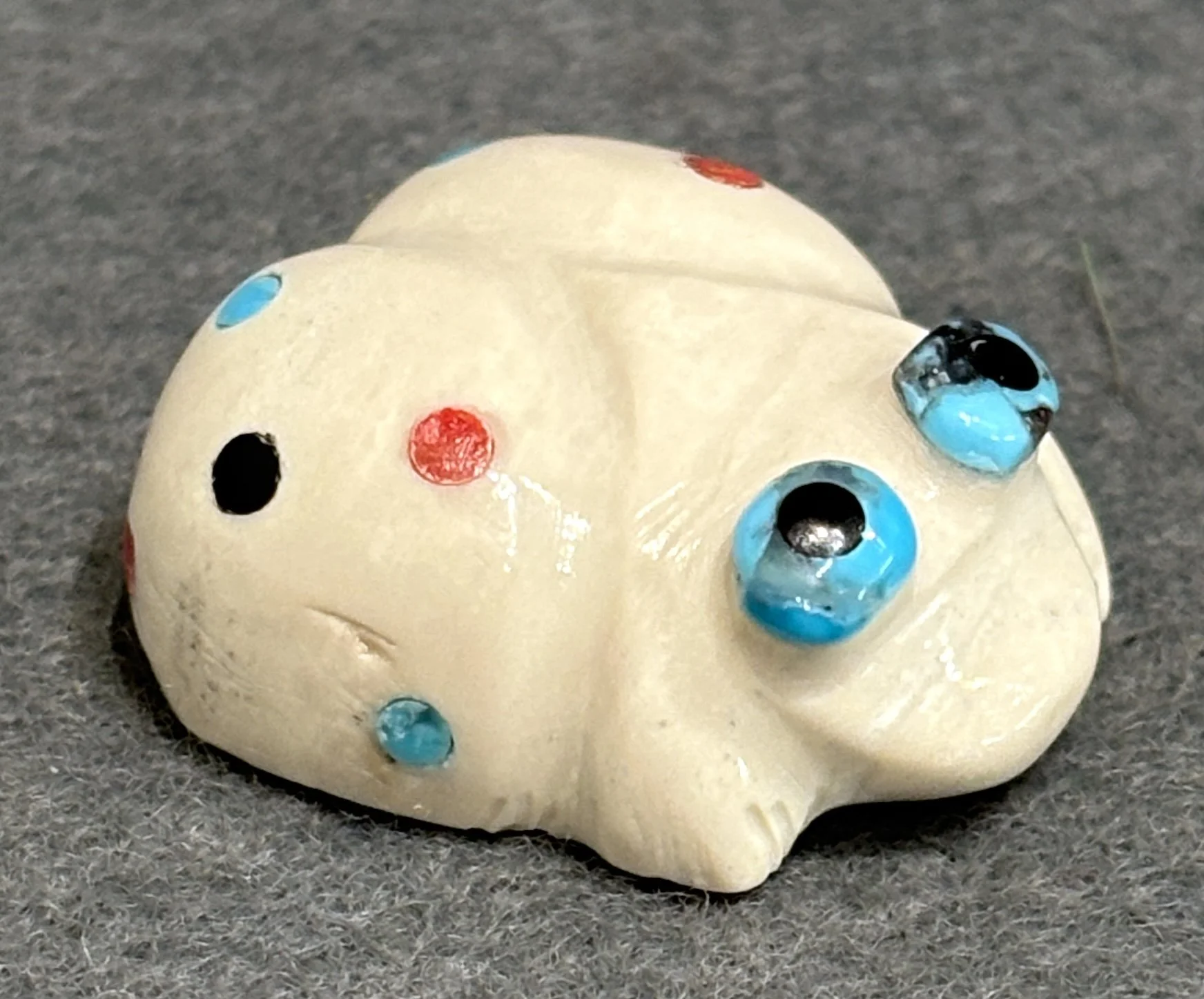 In the two photos at left is a Picasso marble bear by Carl Etsate. 2 inches from snout to tail and $45. An onyx coyote by James Panteah (son of Abby Quam-Panteah and Clayton Panteah). This one is 2.5 inches high and $75.